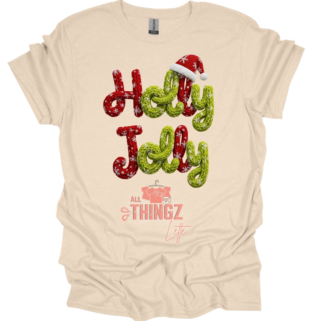 This is a show-stopper! The "Holly Jolly" text is printed with a stunning 3D effect to look like real red and green yarn, complete with a tiny knit Santa hat. It's the perfect blend of nostalgic crafting and modern style.